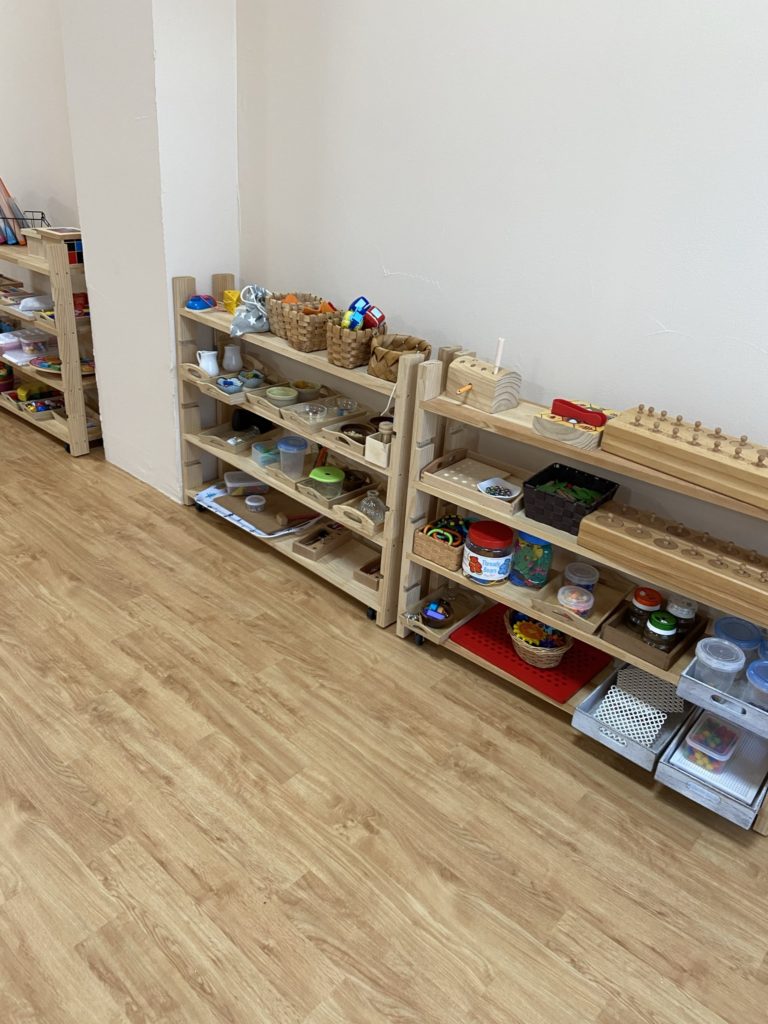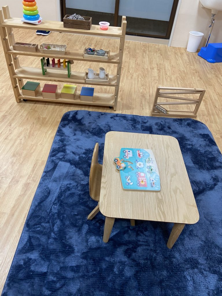 たくさんのモンテッソーリ教育の教具があります。